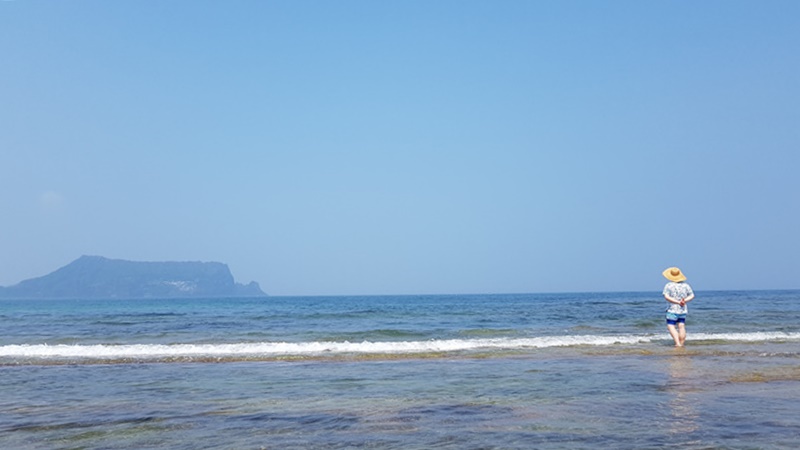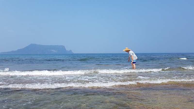 물도 어찌나 맑은지 바닥이 다 보일 정도였습니다. 물이 얕아서 그런지 그렇게 차갑지도 않고 딱 적당해 한참 동안이나 이곳 광치기 해변에서 놀았네요.