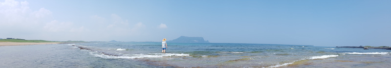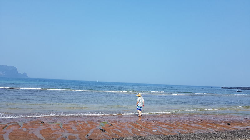 물도 어찌나 맑은지 바닥이 다 보일 정도였습니다. 물이 얕아서 그런지 그렇게 차갑지도 않고 딱 적당해 한참 동안이나 이곳 광치기 해변에서 놀았네요.