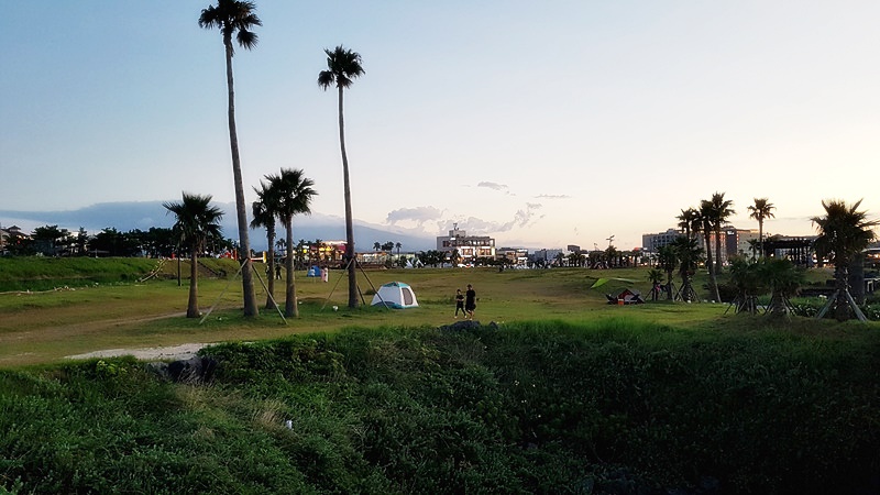 텐트를 치고 저녁 야경을 보기 위해 오는 분들도 계시고 인근 주민들은 산책을 하기 위해 오는 함덕해변입니다.
