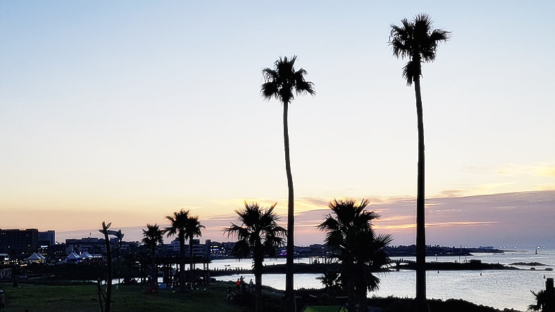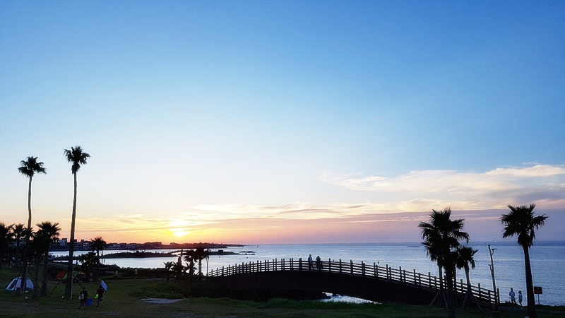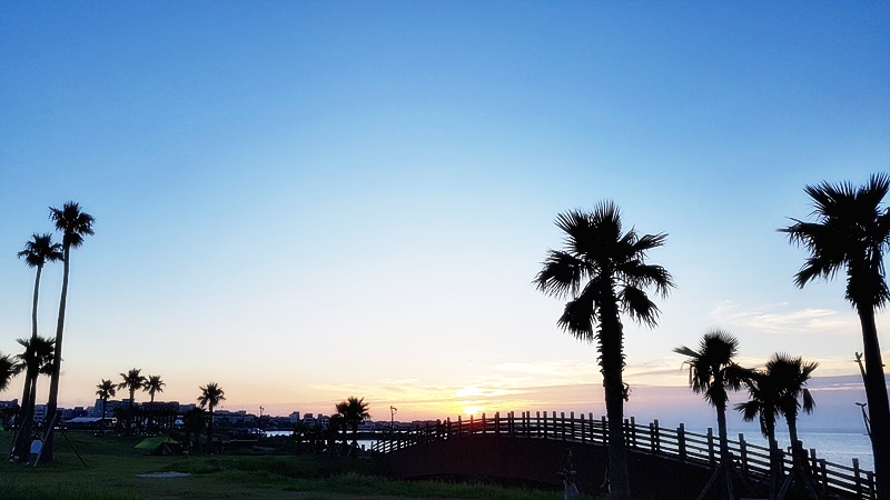 야자수 때문에 더욱 이국적인 정취를 물씬나게 만드는 함덕해변... 일몰이 시작될 무렵에는 이렇듯 많은 분들이 찾아오는 곳이기도 하지요.. 아마도 한낮 따가운 햇살을 뒤로하고 선선한 저녁시간을 즐기기 위함일 겁니다.