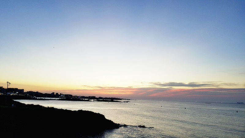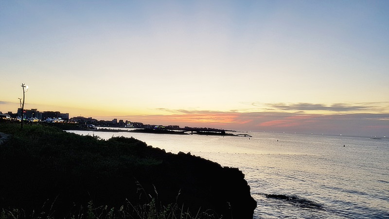 저녁을 먹고 산책하는 집 근처 바닷가 함덕해변....이곳은 일몰이 아름답기로 제주도에서 유명한 곳이기도 합니다. 붉게 타오르는 일몰 풍경은 이곳을 찾은 관광객들에게도 특별한 밤으로 기억되는 곳일 겁니다.
