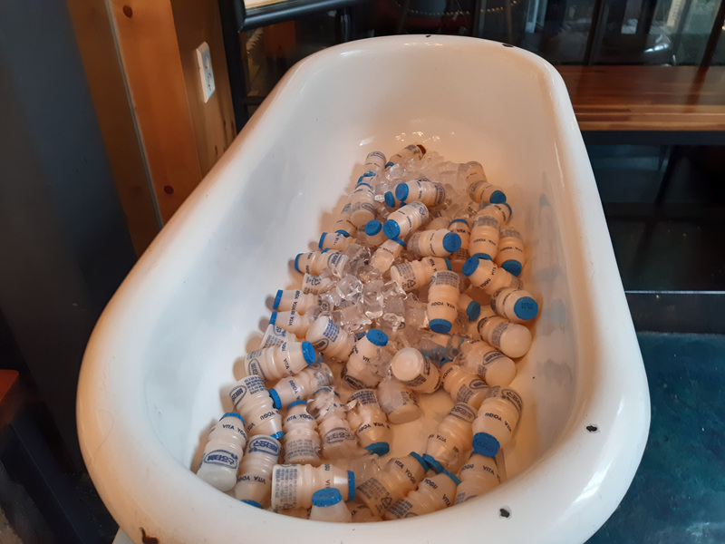 식사를 다 마치고 나오면 욕조 안에 요쿠르트가 있어요.. 이건 나갈 때 후식으로 먹으라고 놓아둔 거니 부담 느끼지 말고 한 개씩 드세요..ㅎㅎ