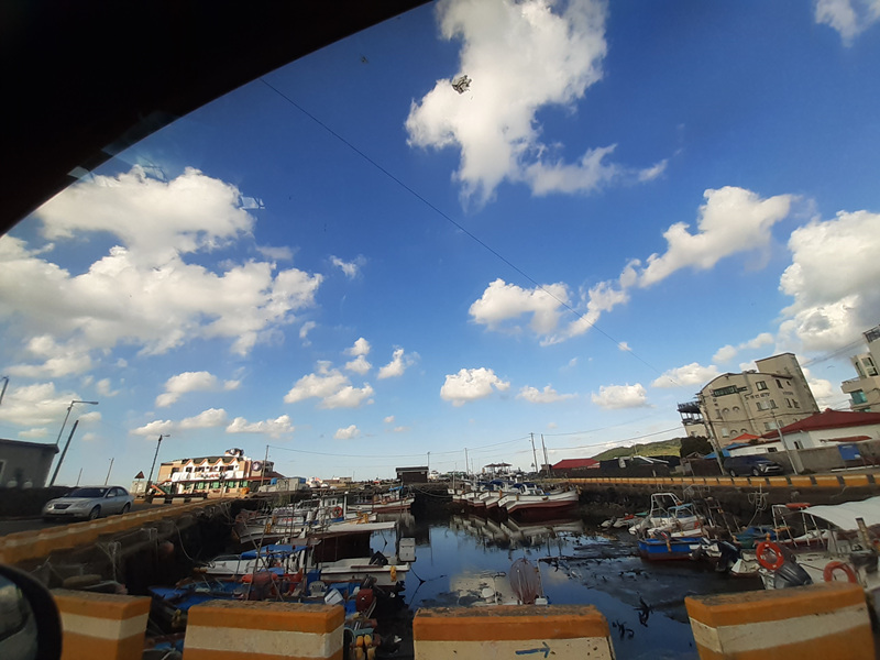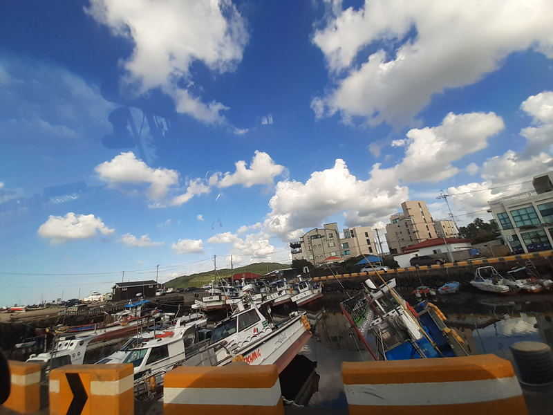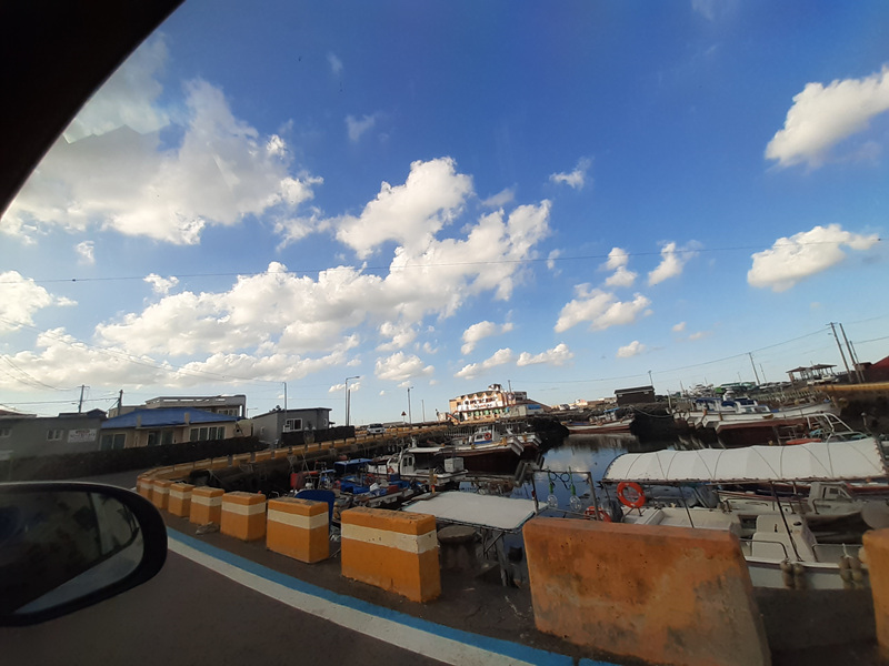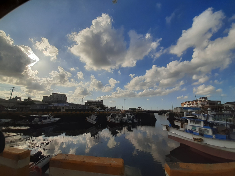 작은 포구에 비친 구름의 모습이 참 이쁩니다. 데칼코마니 같은 사진이 되었어요.