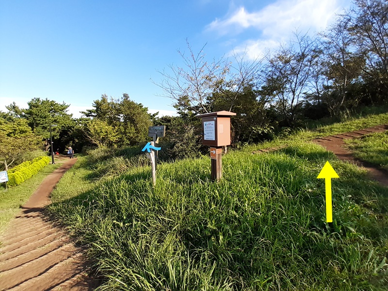 올레길 중간쯤 내려오다 보면 길이 양갈래로 나뉩니다. 우린 화살표가 있는 오른쪽으로 갔어요. 왼쪽은 가볍게 걷기 좋은 산책로이고요. 오른쪽이 별도봉으로 올라가는 코스입니다.