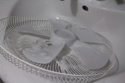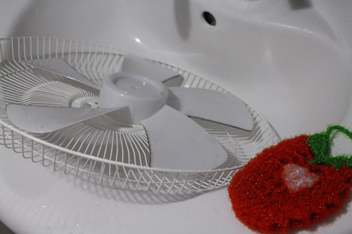 수세미에 주방세제 한 방울을 묻혀 선풍기에 낀 먼지를 닦아 보세요. 생각보다 너무 수월하게 닦여 놀라실겁니다. 지금껏 선풍기에 낀 찌든때를 거친 수세미로 박박 문질렀다면 이젠 부드러운 수세미로 샤샤샥~~~