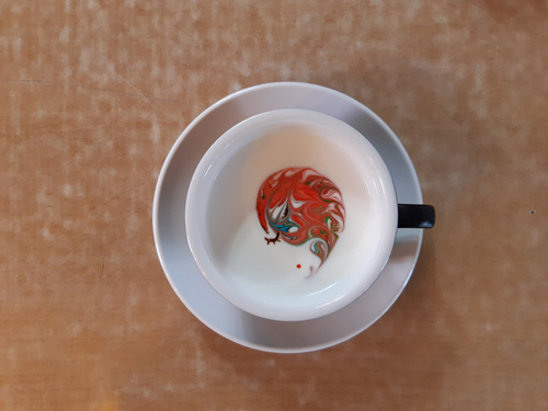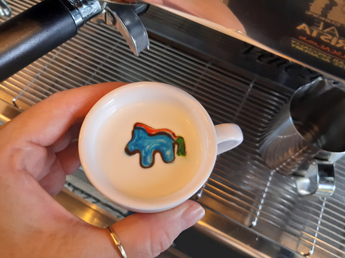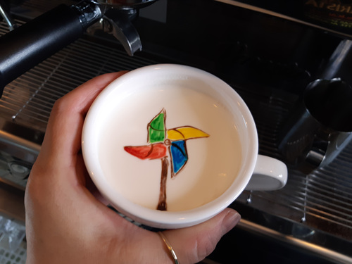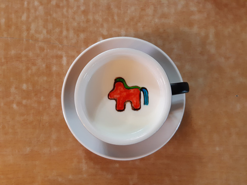 말이 귀엽죠..이건 에스프레소 잔에 그린 말이에요... 커피잔이 크면 큰대로 작으면 작은대로 다양하게 표현하는 센스~~ㅎㅎ