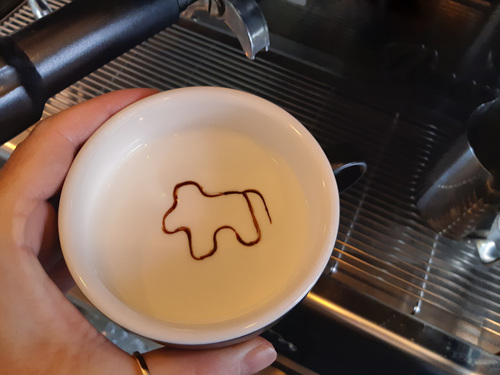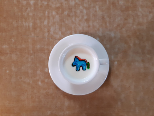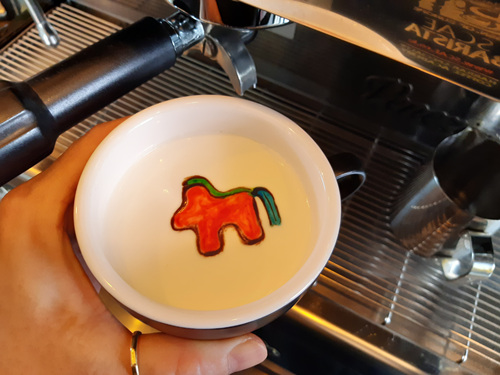 말이 귀엽죠..이건 에스프레소 잔에 그린 말이에요... 커피잔이 크면 큰대로 작으면 작은대로 다양하게 표현하는 센스~~ㅎㅎ