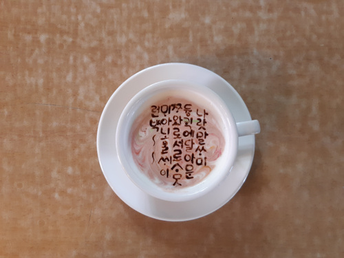 10월 9일은 한글날이죠... 한글의 우수성은 세계적으로 인정 받고 있지요. 다 세종대왕님 덕분입니다. 그래서 한글날을 맞아 훈민정음을 크림 아트로 해 봤어요. 먹기 아까울 정도로 많은 생각을 한 커피였습니다. 특별한 날이 아니더라도 모닝커피 한 잔은 특별하게 마시고 싶은 저........ 조금 생뚱맞지만 같이 마시고 싶지 않나요? ㅎㅎ