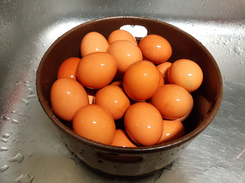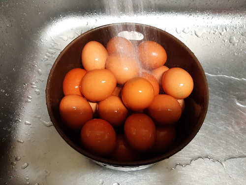 맥반석 달걀은 그럼 어떻게 만들까? 제일 먼저 솥 안에 들어갈 정도의 달걀을 깨끗이 씻어 주시고요,