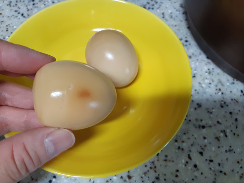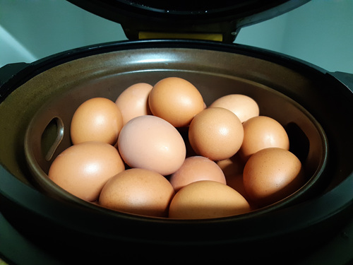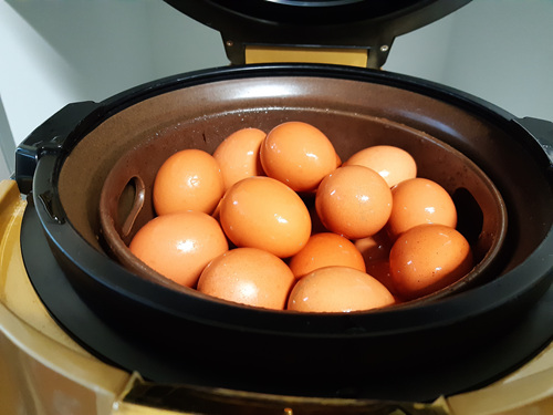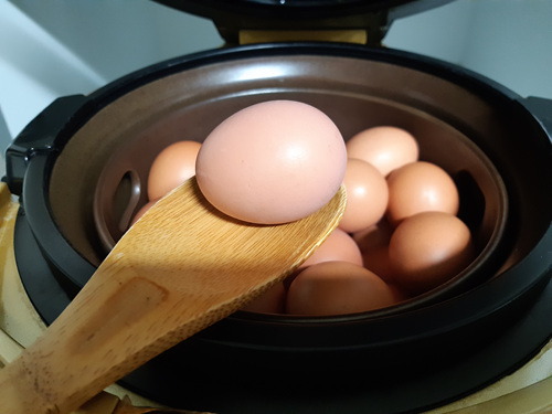 1시간 조금 넘으니 다 됐다는 소리가 들려요... 생각보다 너무 간단하죠... 하지만 달걀이 다 삶아졌다고 이 상태로 먹으면 완벽한 맥반석 달걀이 아니죠..