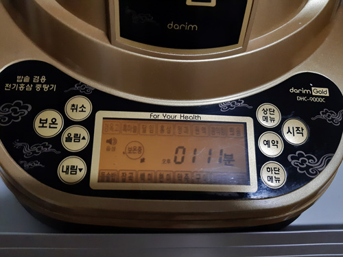 하단 메뉴에 보면 '구이' 메뉴를 누르고 시작 버튼을 꾹 누르면 요리가 됩니다. 시간은 약 1시간 조금 넘게 걸리더라고요..