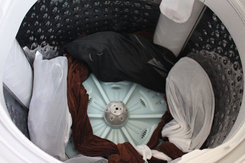 세탁기를 다 돌린 후 모습입니다. 막 옷끼리 서로 엉켜 난리가 나지 않았죠. 만약 세탁하기 전에 미리 정리하지 않았다면 아마도 옷끼리 엉켜 꺼내기도 쉽지 않을 겁니다.