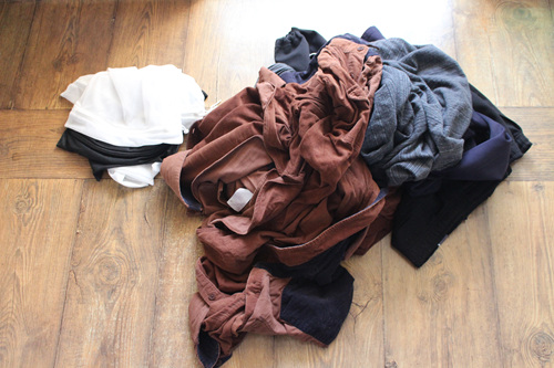 세탁할 빨랫감입니다. 이 상태로 그냥 세탁기에 넣으면 서로 엉켜서 난리부르스가 납니다.