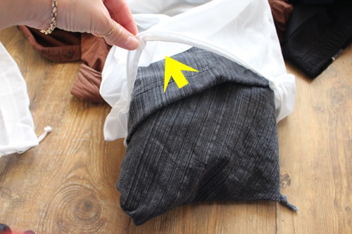 긴 바지와 양말등을 빨래망에 넣었습니다. 이제 남은 건 긴팔 남방인데요..