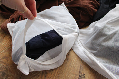 이때 필요한 것 하나는 빨래망입니다. 빨래망엔 긴 바지나 양말등을 넣어 주세요.
