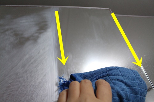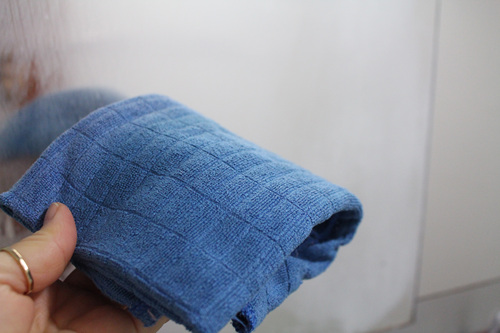 극세사 타월로 닦을 때도 물기 없이 마른 상태로 닦아야 합니다. 지그재그로 닦는 것보다 한쪽 방향으로 닦으면 두 번 손이 가지 않겠죠. 어떤가요... 한 번만 닦았을 뿐인데 거울에 있던 얼룩이 지워졌죠.