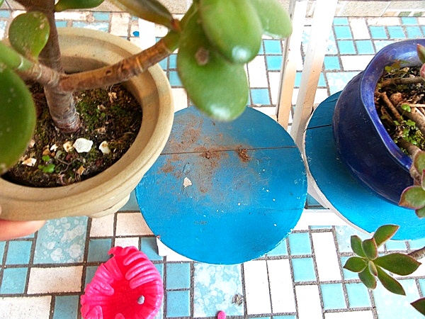 과일 포장지가 바닥에 구멍이 약간 나 있는 것도 있죠... 이것은 화분 받침대로 사용하면 좋아요.