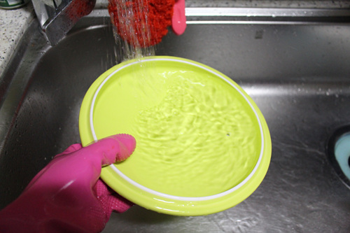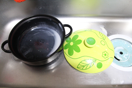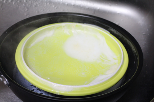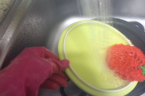 우유가 식으면서 굳어 잘 지워지지 않아 뜨거운 물로 설거지했어요.