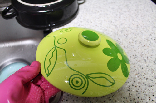 깨끗이 씻은 후...... 확인해 보니 금이 간 뚜껑은 복구가 되지 않았습니다. 하지만 왠지 기분상일까 조금은 희미해진 느낌이......