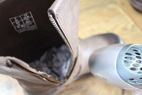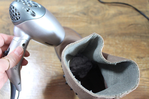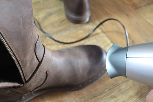 드라이기로 신발에 열을 가해 주세요. 너무 세게 말고 따뜻하다고 느낄 정도로~
