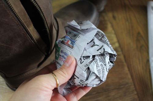 구긴 신문지를 신발 안에 하나씩 넣어서....