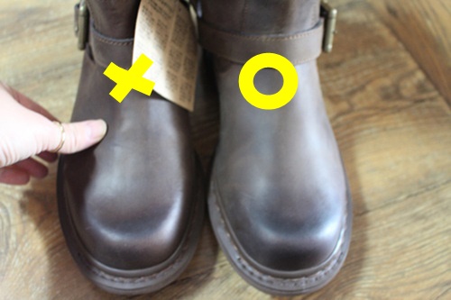 왼쪽 신발엔 신문지가 없고 오른쪽 신발엔 신문지가 있어요. 신문지를 넣으면서 열을 가했기에 발등 부분이 볼록한 상태입니다.