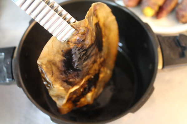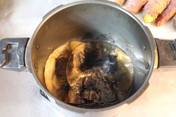 군고구마를 하다 압력밥솥이 눌어 붙지 않게 하려면 기름종이를 활용하면 됩니다.