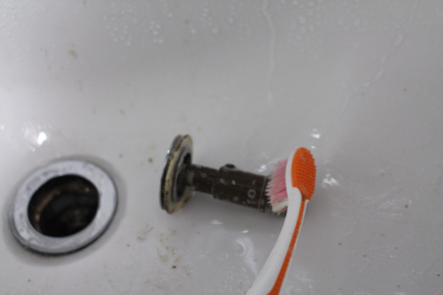 청소는 칫솔에 치약을 묻혀 닦으면 연마제 성분으로 인해 깨끗이 닦입니다.