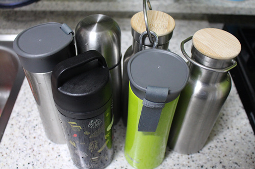 산에 가져갈 보온병과 텀블러 열탕 소독 중...... 이렇게 해야 뜨거운 물을 담았을때 오래 가더라고요~
