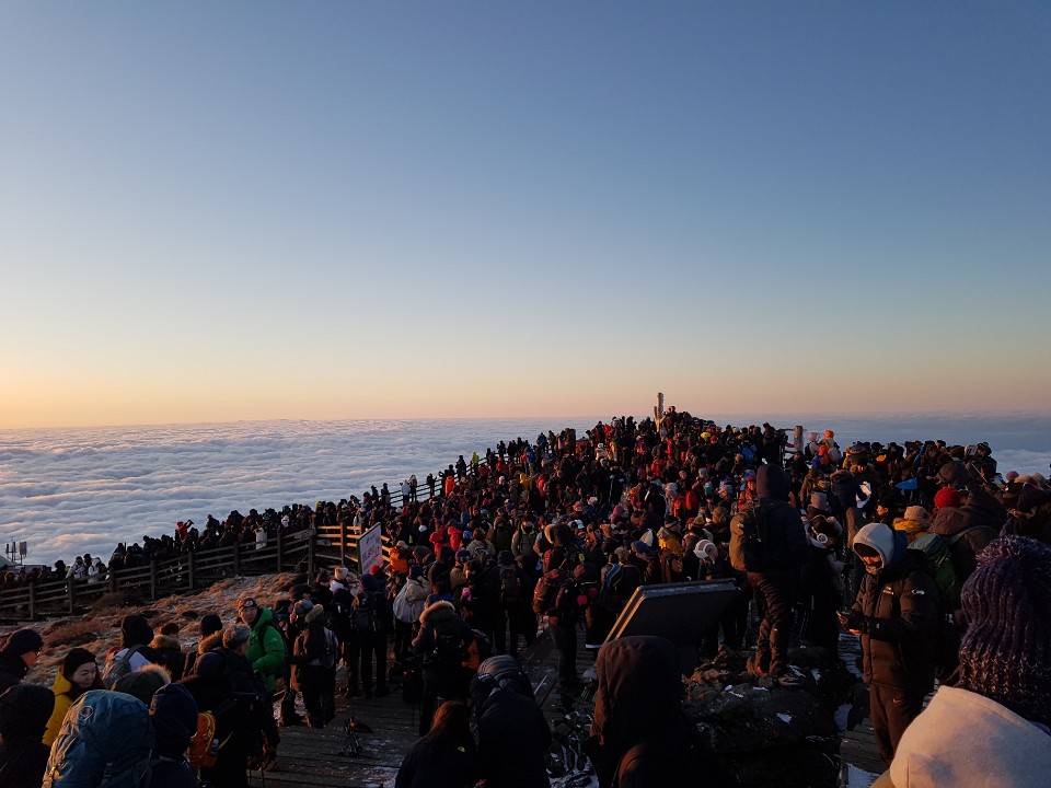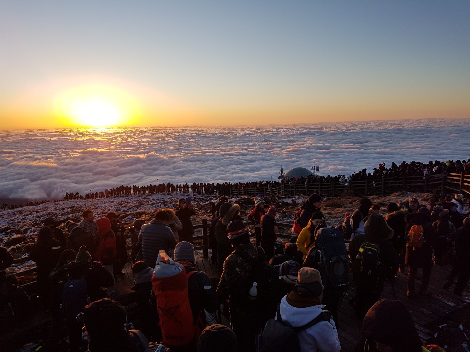 작년에 한라산 정상에서 날씨가 많이 안 좋아 새해 일출을 아쉽게 보지 못했는데 올해는 다행스럽게 환상의 새해 일출을 볼수 있었습니다.