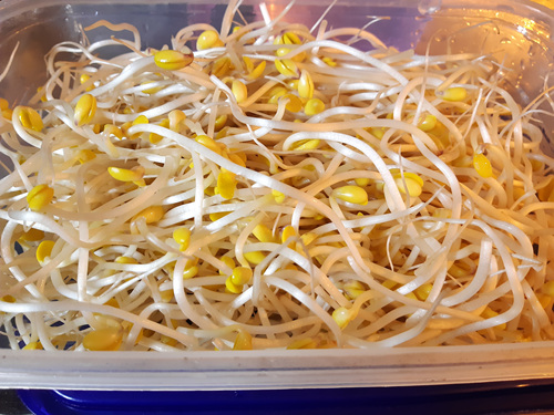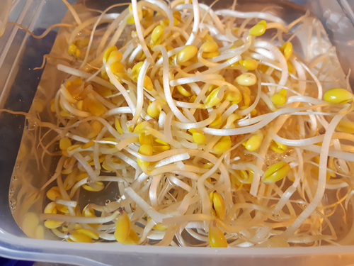 그리고 밀폐용기를 준비한 후 통에 씻어 놓은 콩나물을 담으세요.
