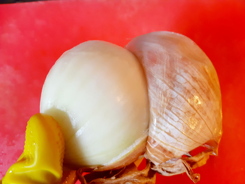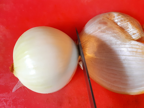반으로 썬 후에 양파껍질을 벗겨 주면 되는데요. 육안으로 껍질과 속이 구분이 잘 되어 쉽게 양파껍질을 벗길 수 있다는 사실..
