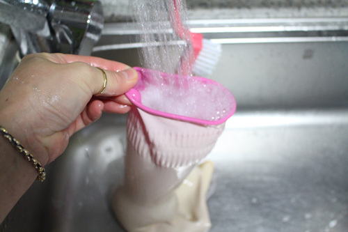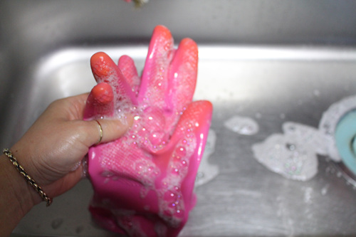 하여간 고무장갑 겉을 씻었으면 이젠 뒤집어서 고무장갑 속도 같은 방법으로 씻어요. 사실 속이 더 중요한 부분이니....