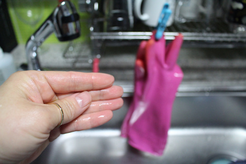 고무장갑을 벗으니 냄새가 ....