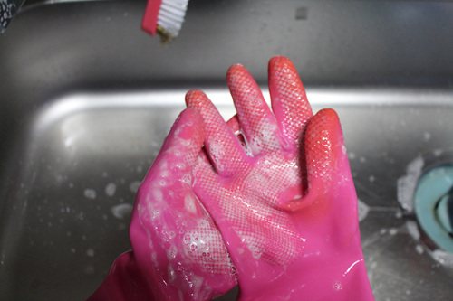 고무장갑을 낀 채로 씻어도 되지만....
