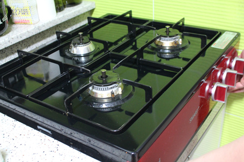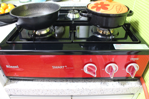 건전지 교체 후 다시 가스렌지를 제 자리에 밀어 두고 가스불을 켜 보니....