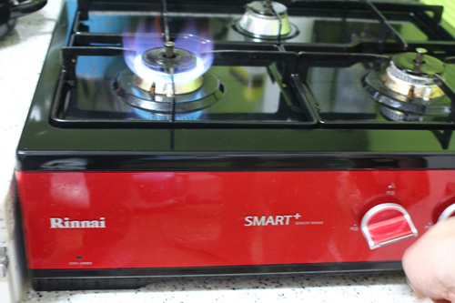 건전지 교체 후 다시 가스렌지를 제 자리에 밀어 두고 가스불을 켜 보니....