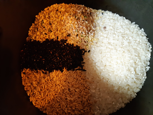 쌀 씻기 전 잡곡을 하나씩 잘 섞어 줍니다. 나이가 들어 가면서 자연스럽게 건강을 생각하게 되네요. 아마도 요즘엔 웰빙시대가 도래한 이후 많은 분들이 건강식으로 식사를 하니 분명 나이가 들어서 웰빙식을 찾는다는건 정답이 아닐지도 모르겠네요.