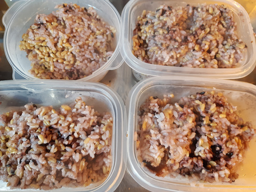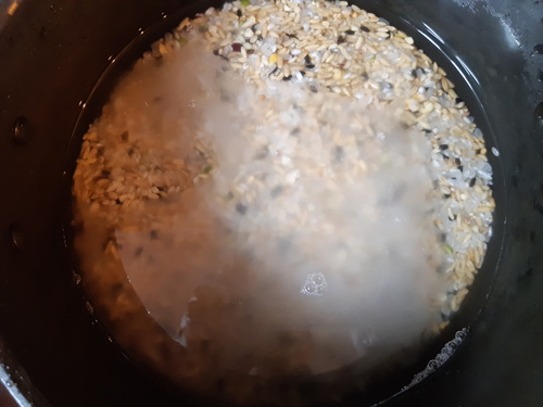 잡곡밥 할때는 쌀을 불리지 않고 할 수 있는데요. 1차, 2차 두 번 압력밥솥에 돌리면 됩니다.