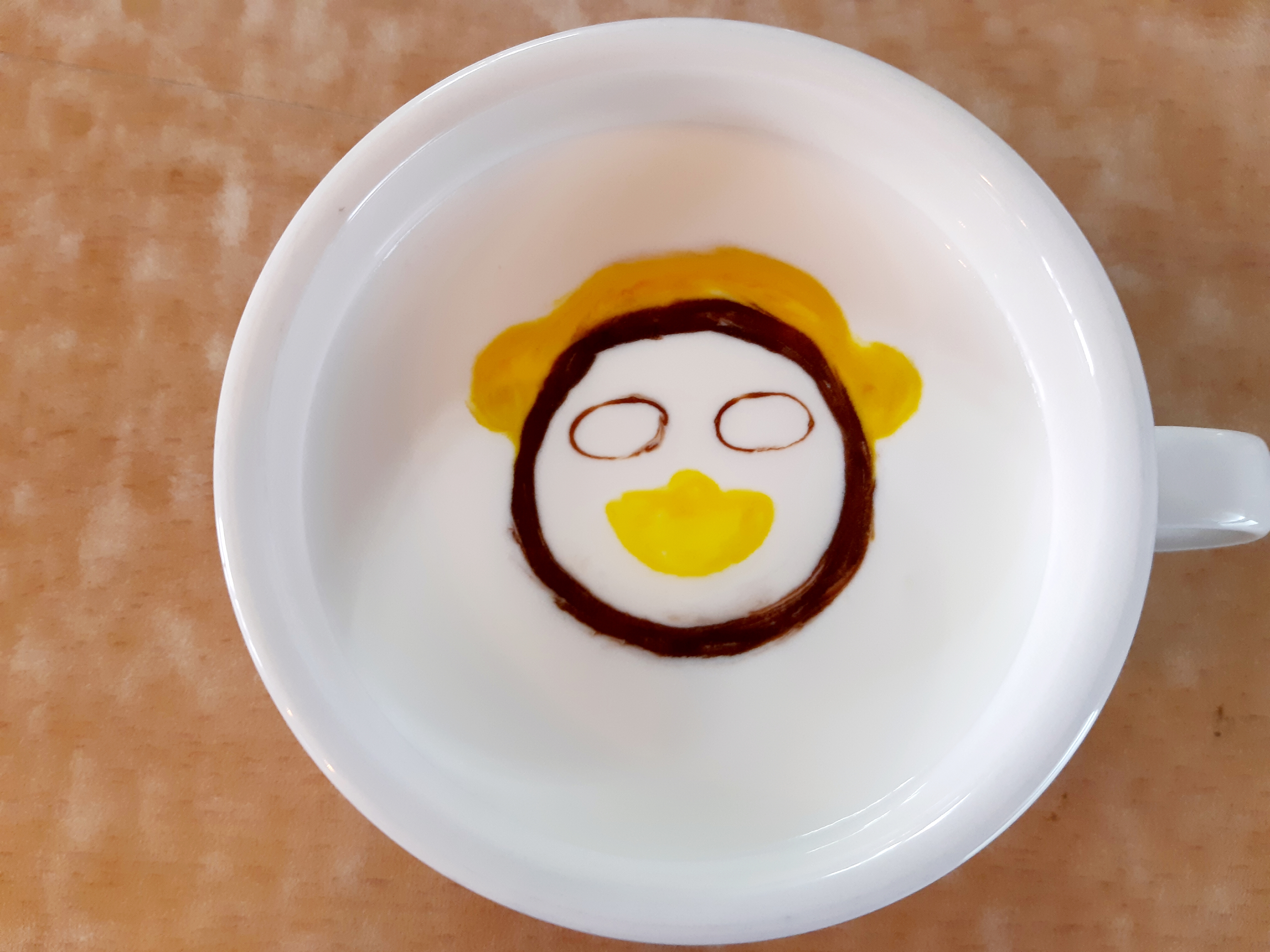 오늘은 요즘 대세인 펭수를 커피 위에 그려 봤어요.