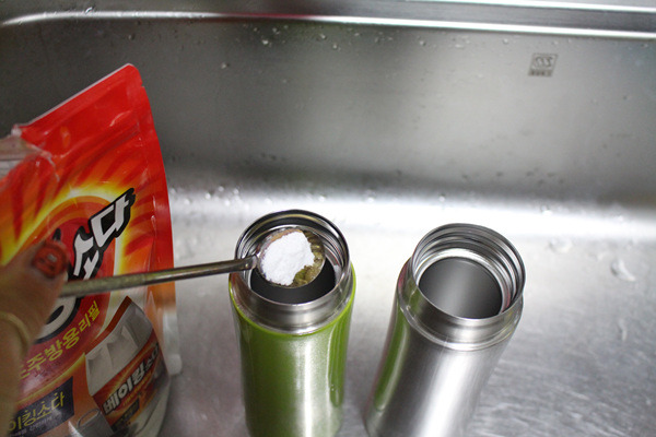 텀블러를 세척한 후에 베이킹소다,뜨거운 물, 식초가 섞인 것은 그냥 버리지 말고 도마나 칼에 부어 한 번 살균소독도 해 주세요. 물론 그 물은 싱크대로 흘러 내려 가겠죠...그럼 싱크대 살균소독도 자연스럽게 됩니다.