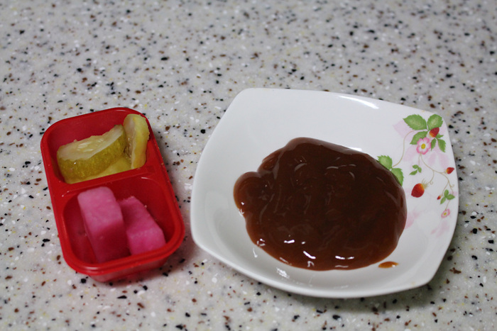 전자렌지 넣고 타임을 2분을 누르고, 돈까스 소스를 그릇에 담아 놓습니다.