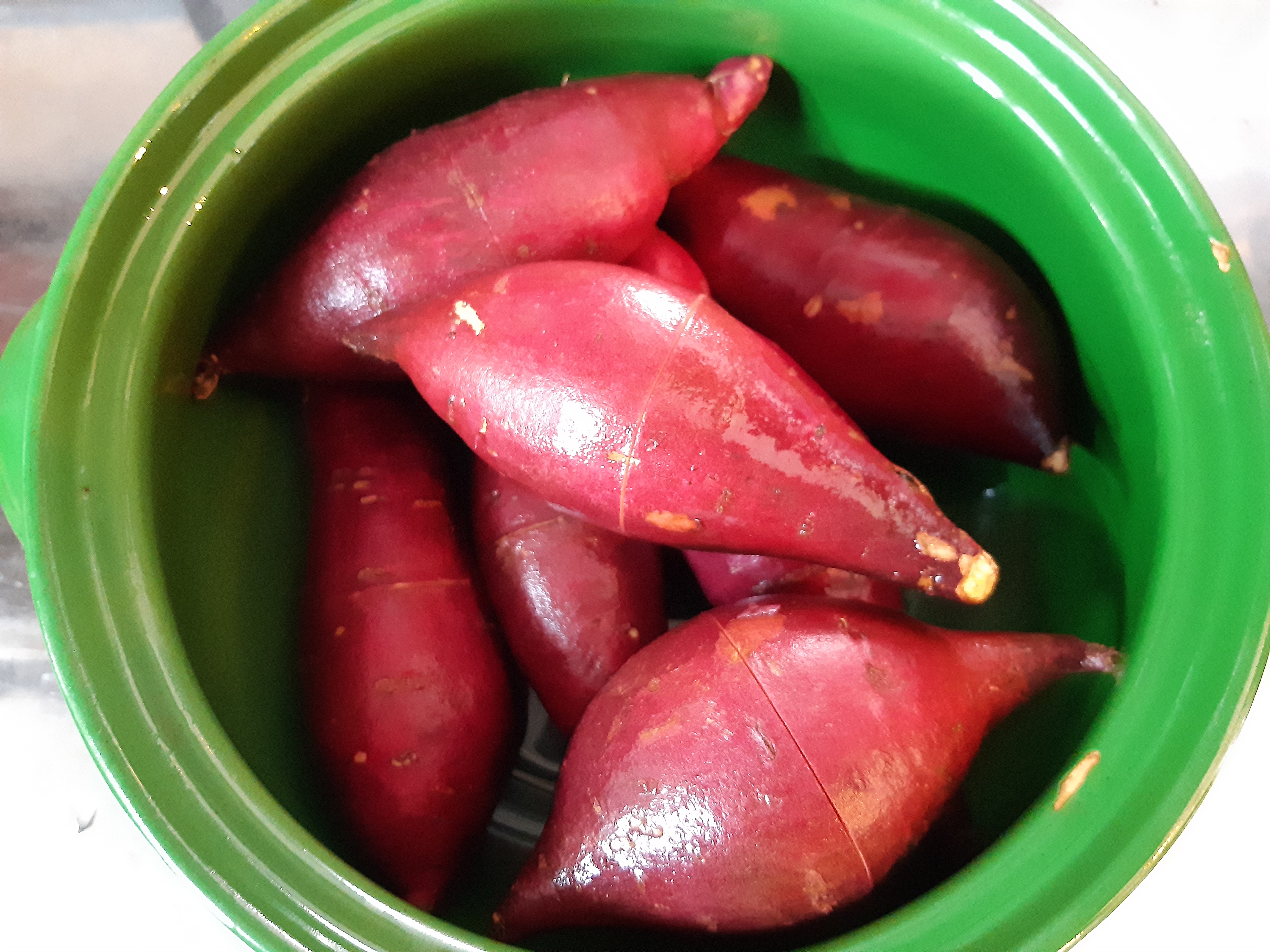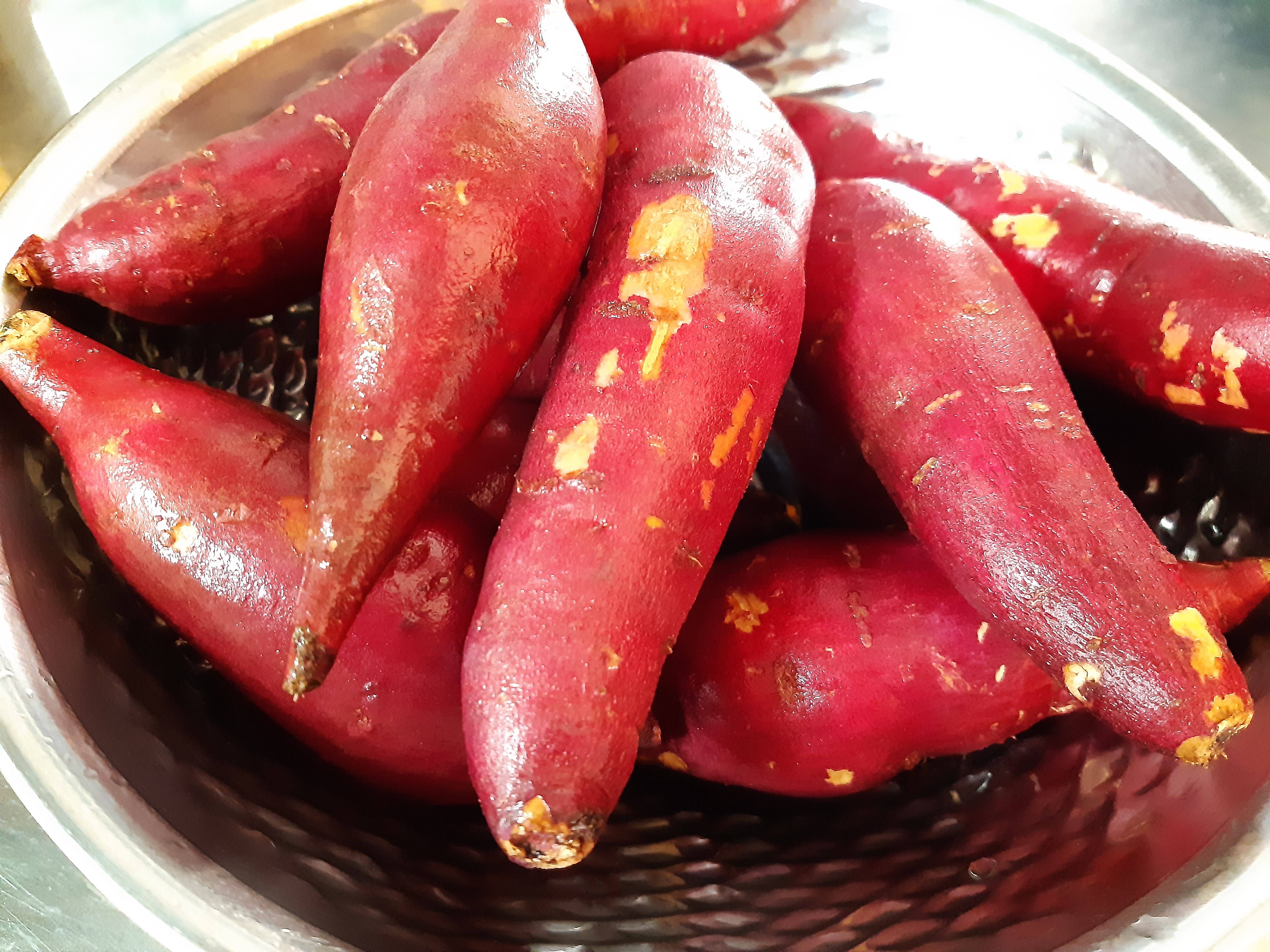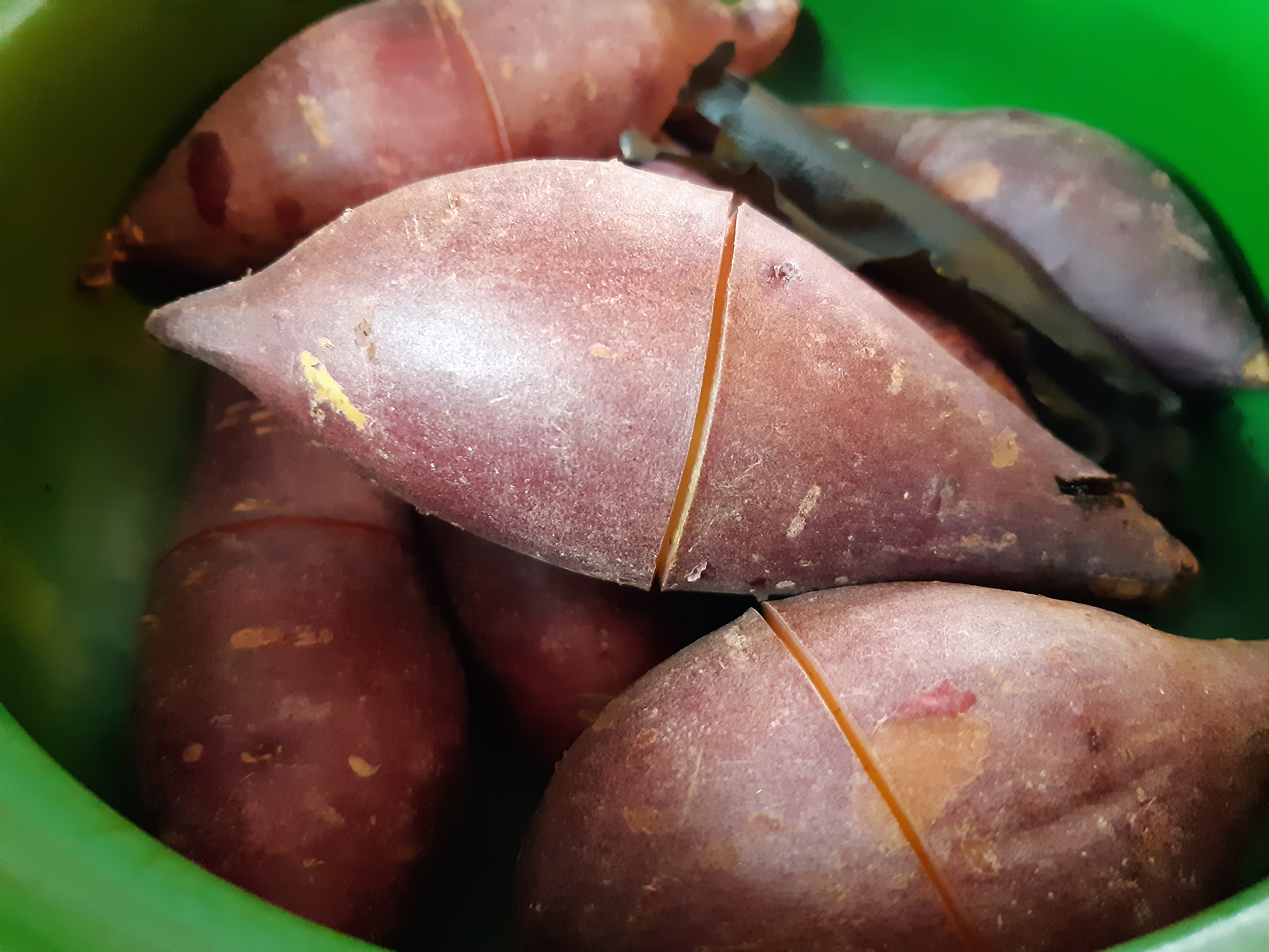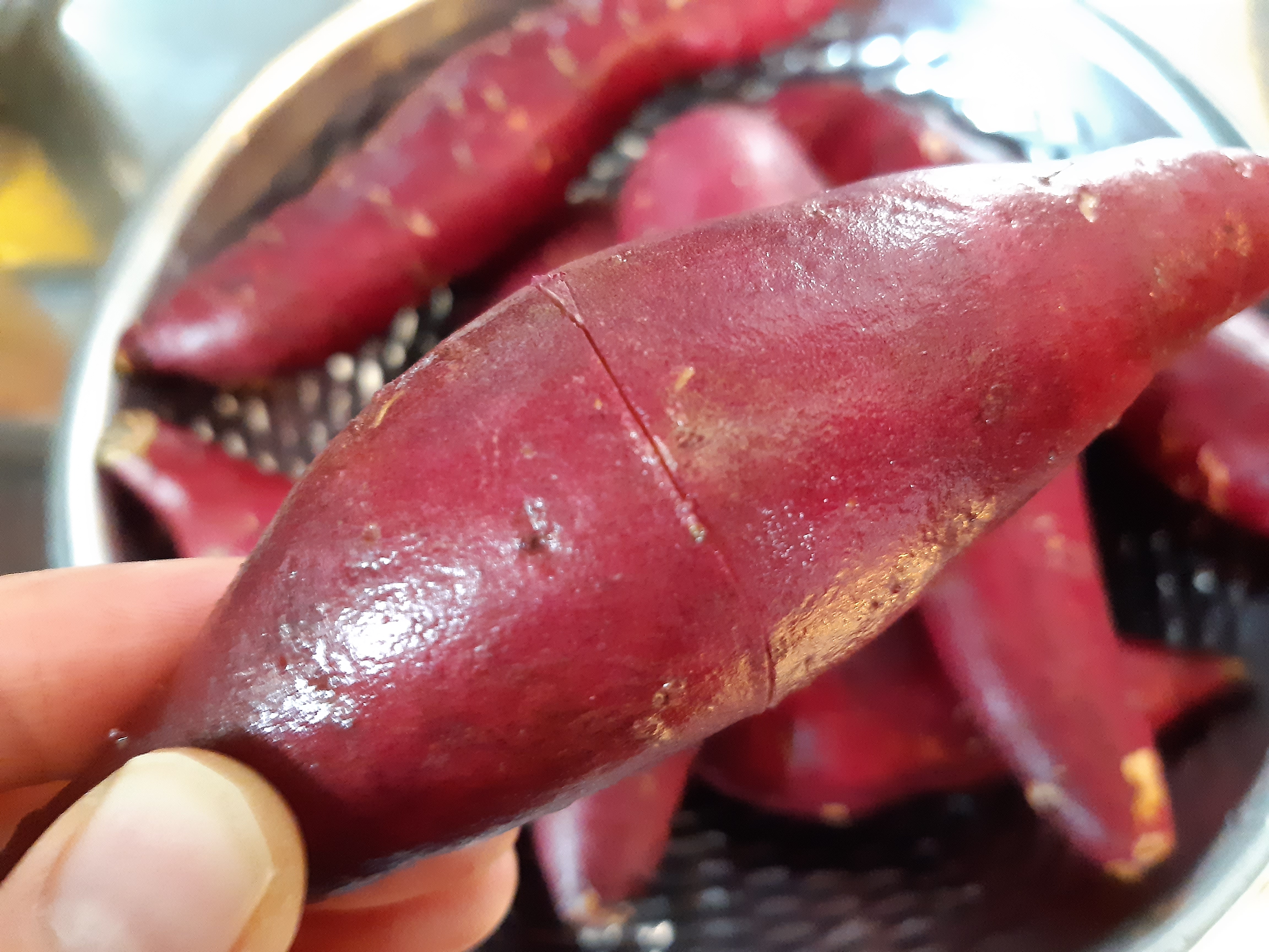고구마 중간에 칼집을 낸 부분도 껍질 벗기기 좋게 벌어 졌구요.