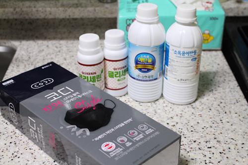 에탄올, 글리세린, 정제수(정제수가 없다면 끓인 물로 대체해도 됨)