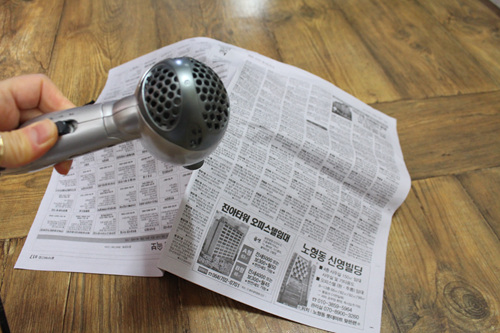 쓰레기봉투에 넣어 헤어드라이기 바람을 쐴때는 1단으로..