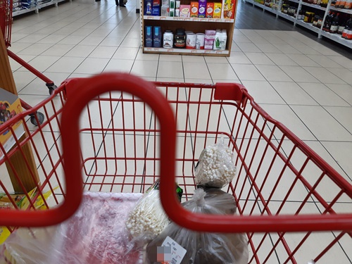 조금 별난 모습이란 생각이 들었지만 유난을 떨어도 왠지 이해가 가는 이유는 다 아시겠지요. 그렇게 우린 마스크를 착용하고 남편은 장갑 한짝만 착용하고 마트에 갔습니다. 그런데 더 놀라운건 어떤 분들은 1회용 비닐장갑을 착용하고 장을 보는 분들이 있는가하면 남편처럼 목장갑을 아니지만 장갑을 착용하고 장을 보는 분들이 눈에 띄게 많더군요.