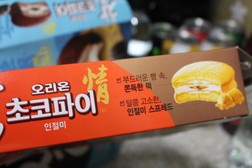 쫀득한 떡이 들어 있다는 인절미 초코파이 콩가루까지 들어 있다는 글귀에 당장 먹고 싶어졌어요.