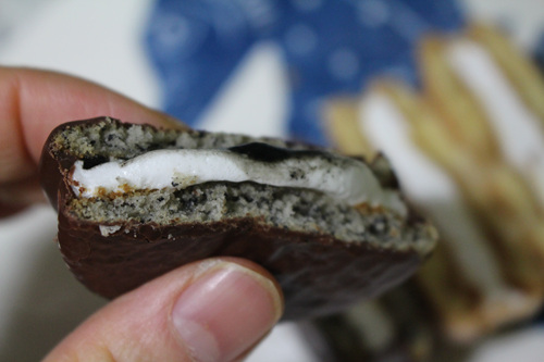 초코파이 내용물도 충실한 것 같아 흡족합니다. 물론 맛은 어떨까... 흑임자 초코파이는 진짜 건강해지는 듯한 맛이었구요. 인절미 초코파이는 고소한 콩가루의 맛과 쫀득한 떡의 맛이 관건이었어요. 개인적인 입맛 평가지만 인절미 초코파이가 더 맛있었어요.