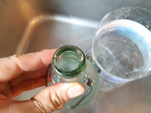 먼저 유리병에 물을 채워 주세요.