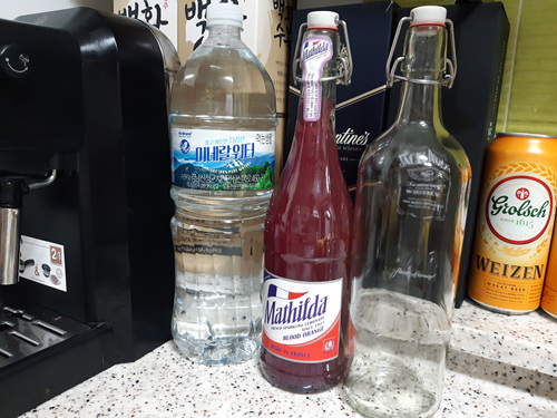 유리병은 이뻐서 재활용하기 위해 씻어 뒀어요.
